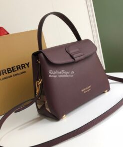 Replica Burberry Grainy Leather and House Check Tote Bag Mahogany Red