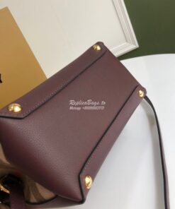 Replica Burberry Grainy Leather and House Check Tote Bag Mahogany Red