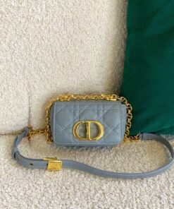 Replica Dior Caro Micro Bag In Blue Cannage Calfskin