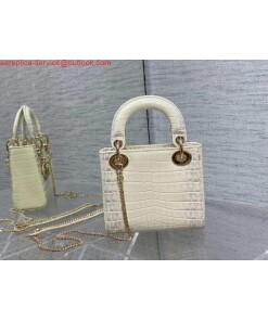 Replica Dior M0505 Mini Dior Lady Bag Beige Cannage Crocodile Gold