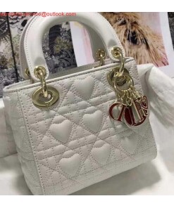 Replica Dior M0505 Mini Dior Lady Bag White Cannage lambskin Gold with Red Logo