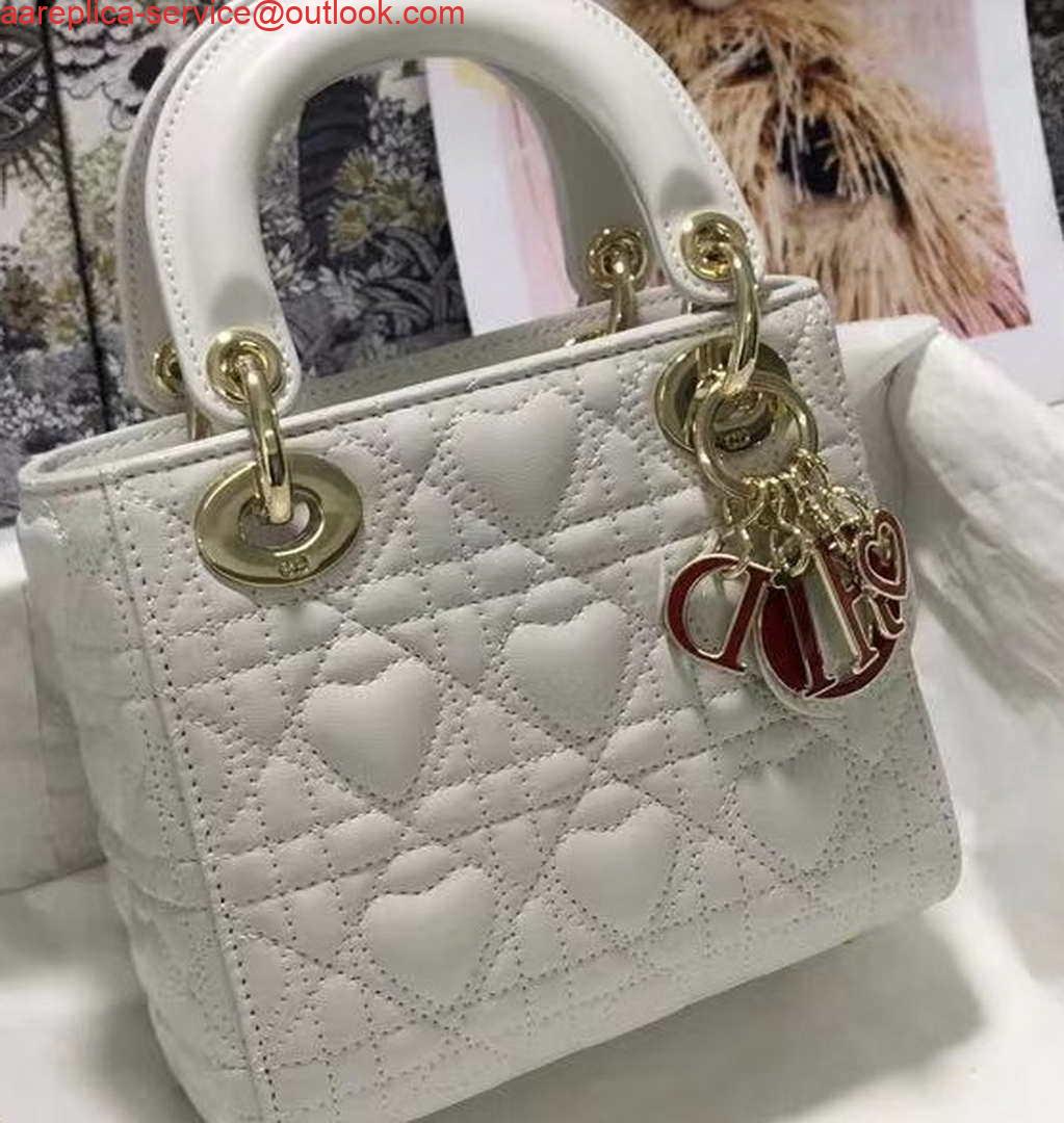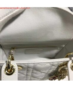Replica Dior M0505 Mini Dior Lady Bag White Cannage lambskin Gold with Red Logo