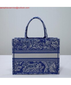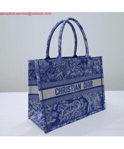 Replica Dior M1296 Book Tote Medium Neon Blue Toile de Jouy Reverse Embroidery