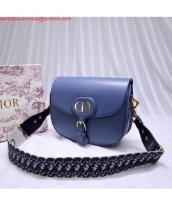 Replica Dior M9320 Large Bobby Bag Blue Box Calfskin with Blue Oblique Strap
