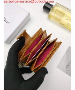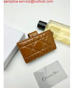 Replica Dior S0074 Wallet Lady dior 5-Gusset card holder Brown Patent Cannage Calfskin