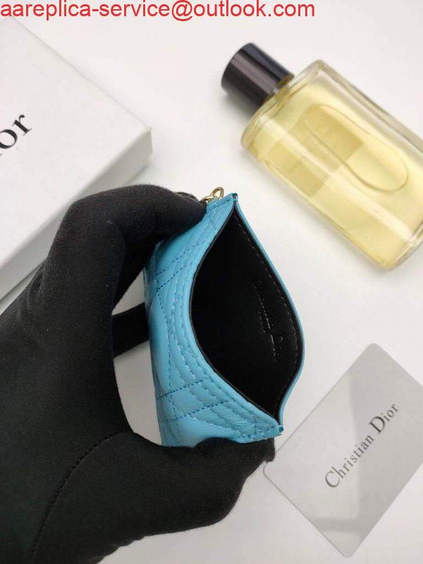 Replica Dior S0126 Dioramour Lady Dior card holder Blue Patent Cannage Calfskin