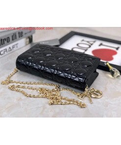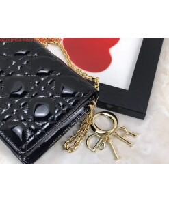 Replica Dior S0204 Lady Dior Pouch Patent Cannage Calfskin Black