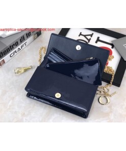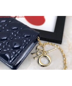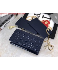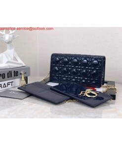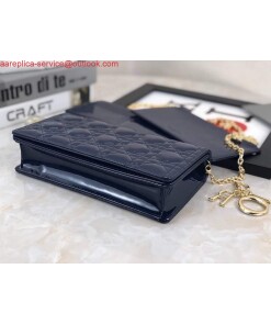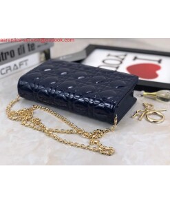Replica Dior S0204 Lady Dior Pouch Patent Cannage Calfskin Navy Blue