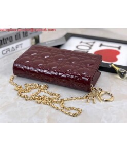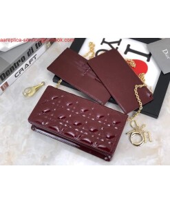 Replica Dior S0204 Lady Dior Pouch Patent Cannage Calfskin Wine Red