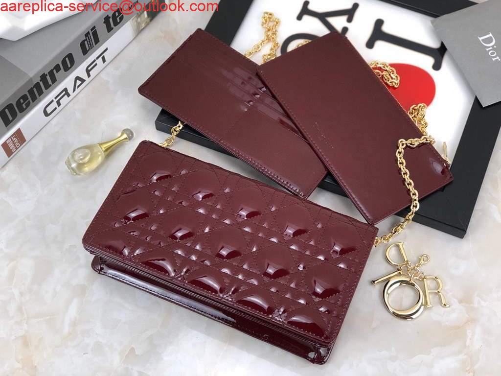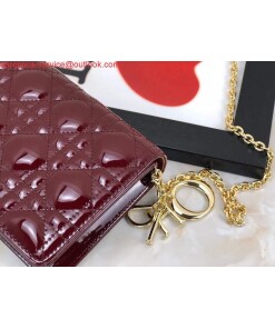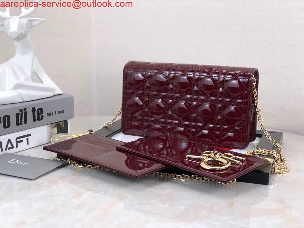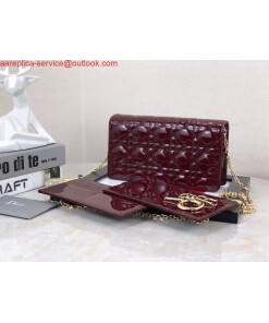 Replica Dior S0204 Lady Dior Pouch Patent Cannage Calfskin Wine Red
