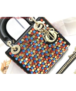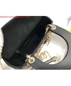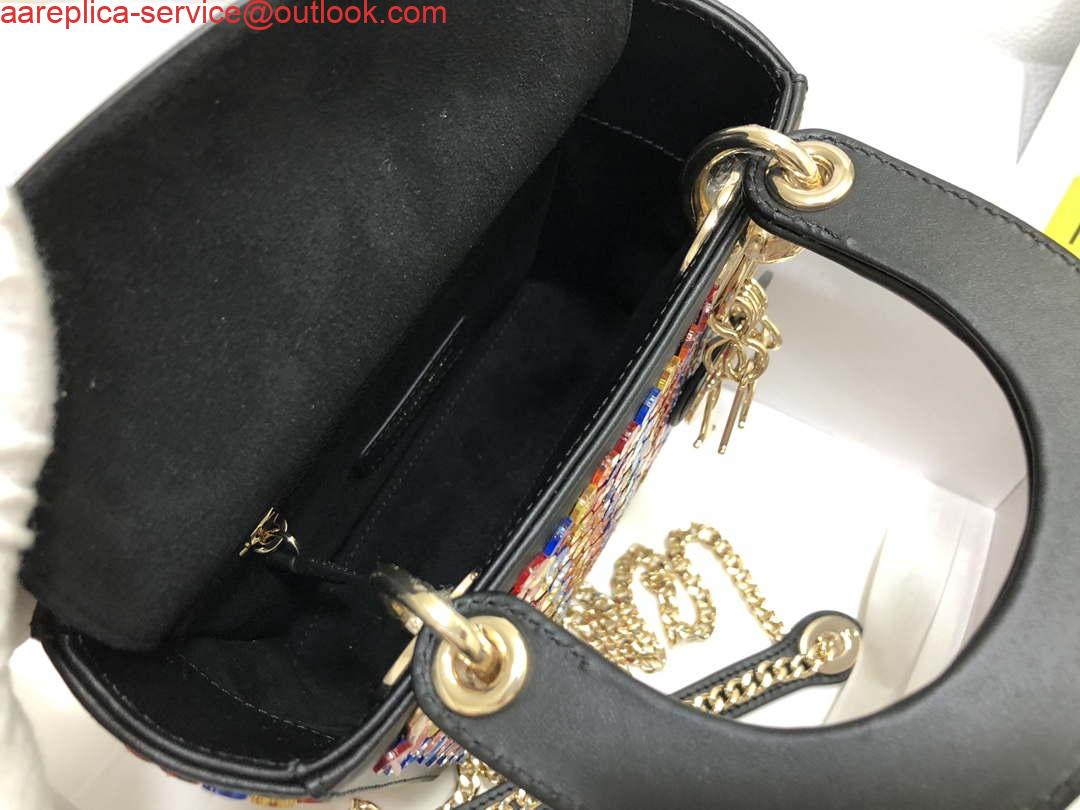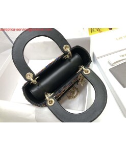 Replica Dior S0856 Micro Lady Dior Bag Horizon Black Metallic Cannage Lambskin with multicolor embroidery sequins