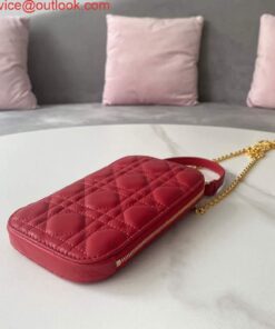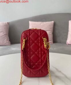 Replica Dior S0872 Lady Dior Phone Holder Cannage Lambskin Red