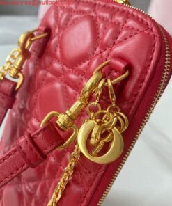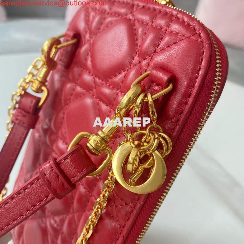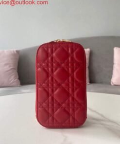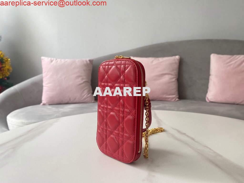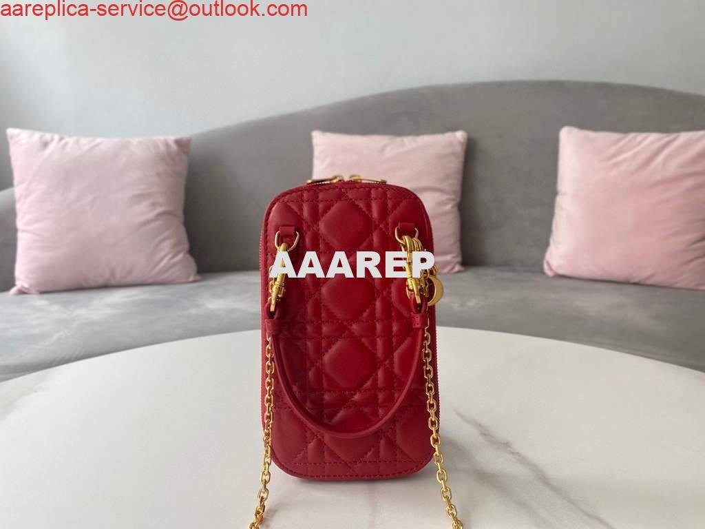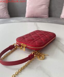 Replica Dior S0872 Lady Dior Phone Holder Cannage Lambskin Red