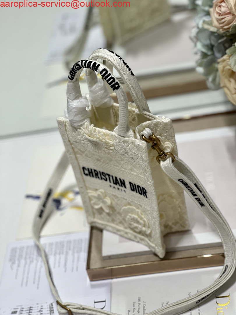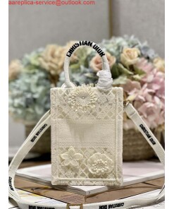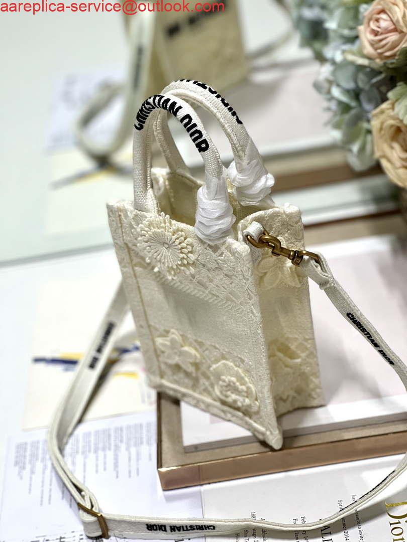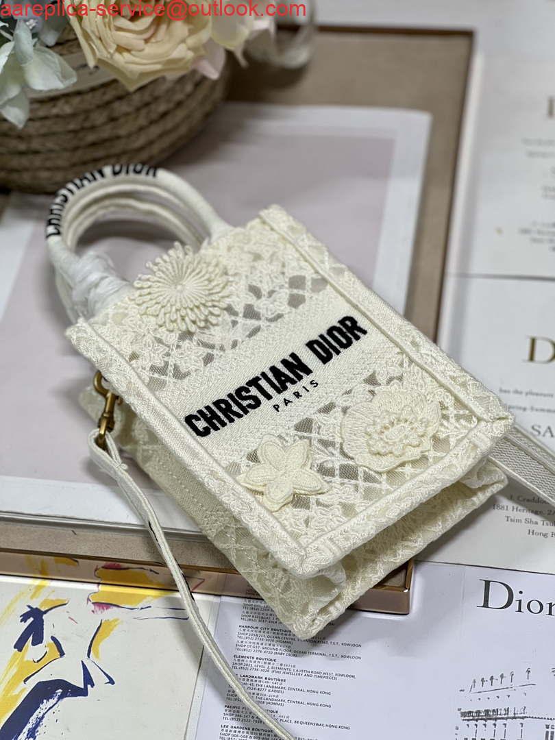 Replica Dior S5555 Mini Dior Book Tote Phone Bag Biege lace flowers S1109