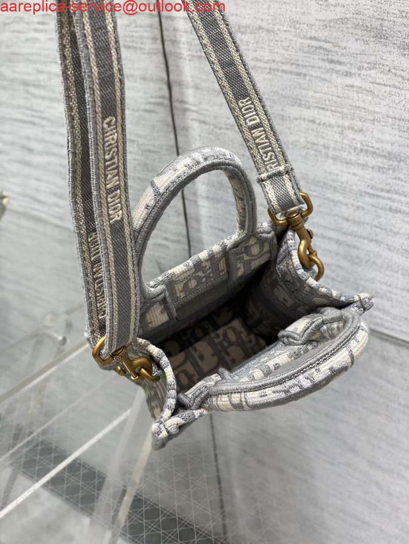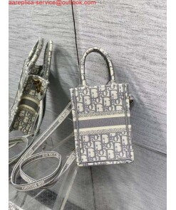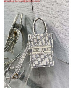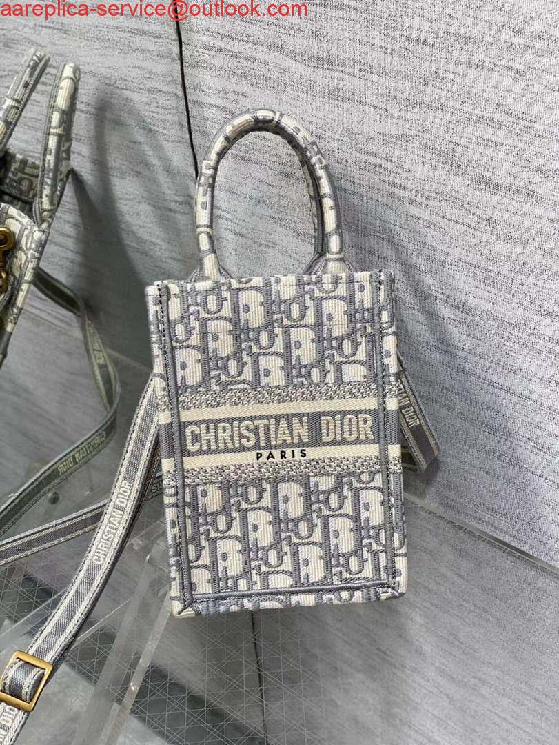 Replica Dior S5555 Mini Dior Book Tote Phone Bag Gray Dior Oblique Embroidery