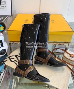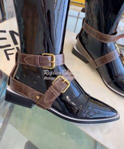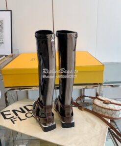 Replica Fendi Glossy Neoprene FFrame Harness Boots Black
