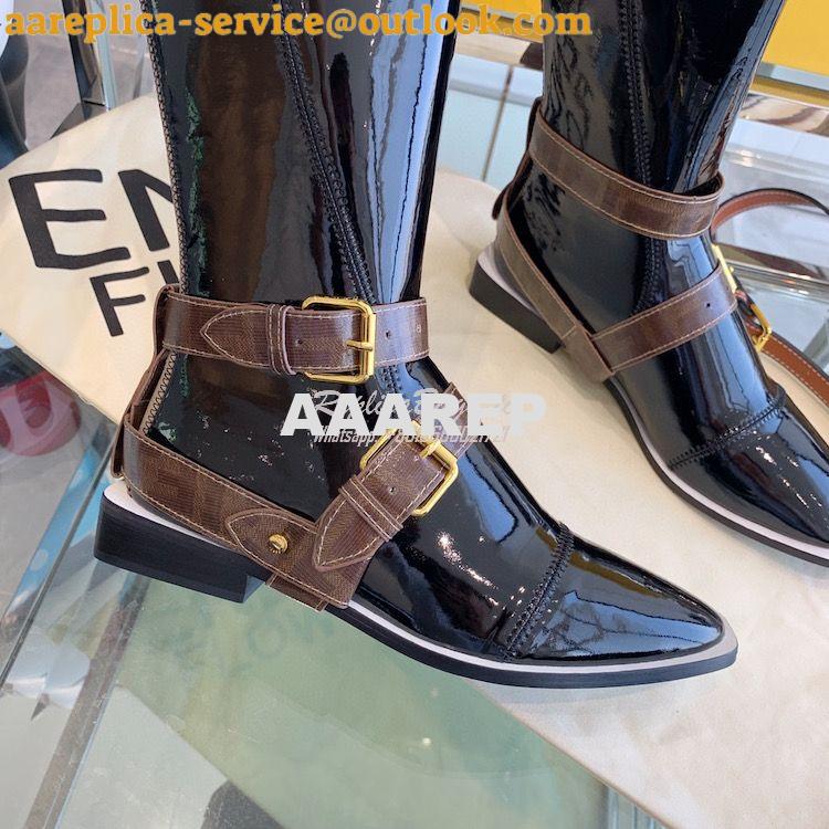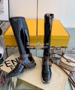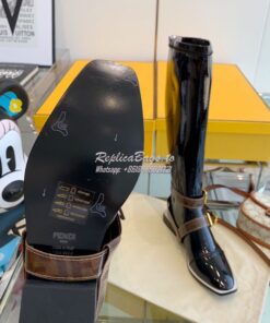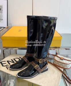Replica Fendi Glossy Neoprene FFrame Harness Boots Black