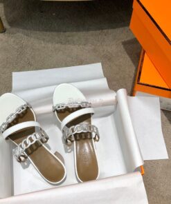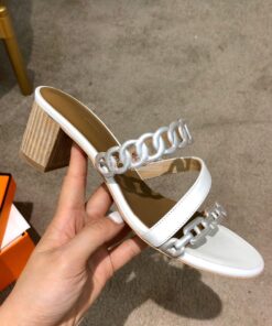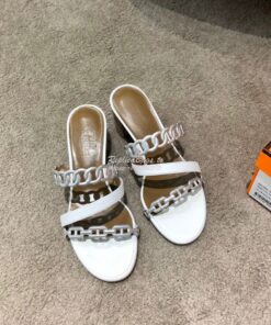 Replica Hermes Ajaccio Sandal Pump with Chaine d'Ancre H201068 Blanc
