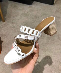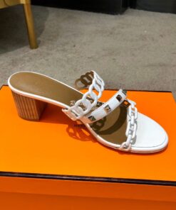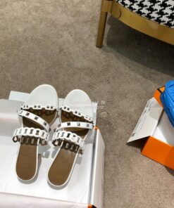 Replica Hermes Ajaccio Sandal Pump with Studs H201068 Blanc
