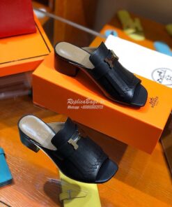 Replica Hermes Alma Sandal 2.2'' Heel H201094 Black