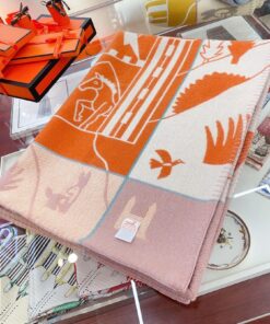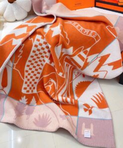 Replica Hermes Avalon Epopee Blanket in Mandarine Wool and Cashmere