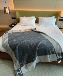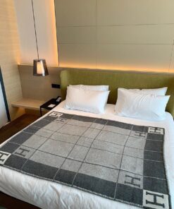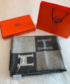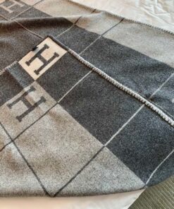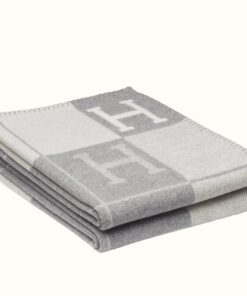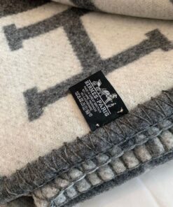 Replica Hermes Avalon III Throw Blanket in Grey Wool and Cashmere