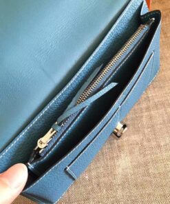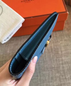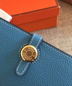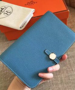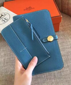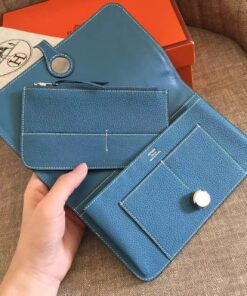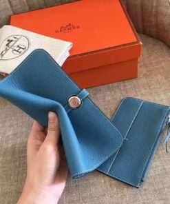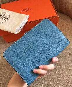 Replica Hermes Dogon Duo Wallet in Blue Jean Clemence Leather