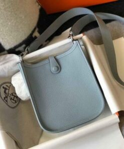 Replica Hermes Evelyne Bag Hermes Mini Crossbody Bag 20409 Silver Buckle Light Blue