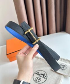 Replica Hermes H d'Ancre Reversible Belt 32MM in Blue and Black Epsom Calfskin