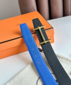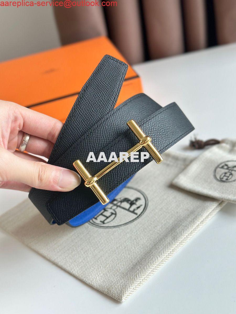 Replica Hermes H d'Ancre Reversible Belt 32MM in Blue and Black Epsom Calfskin