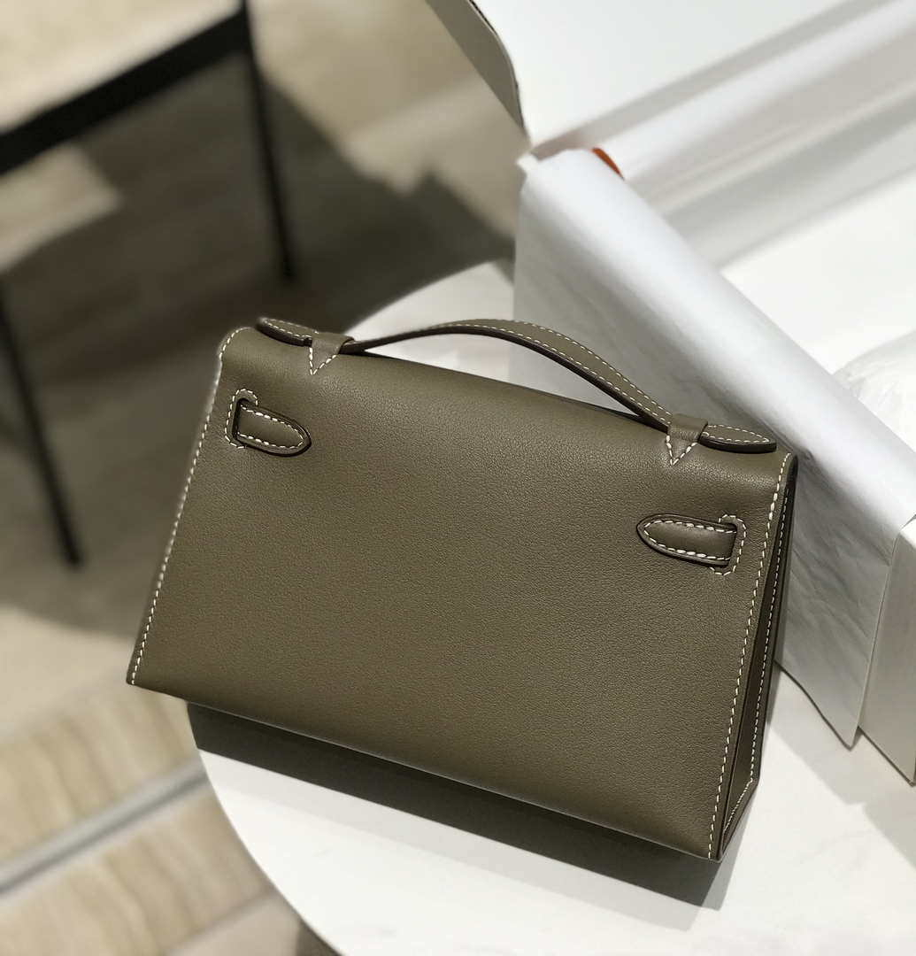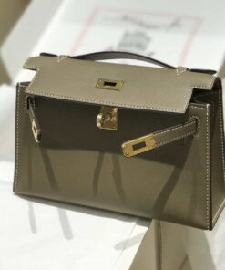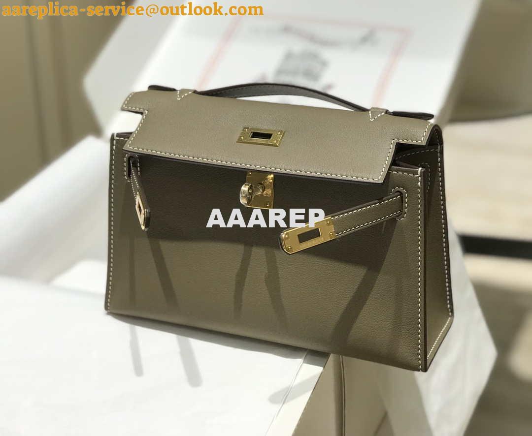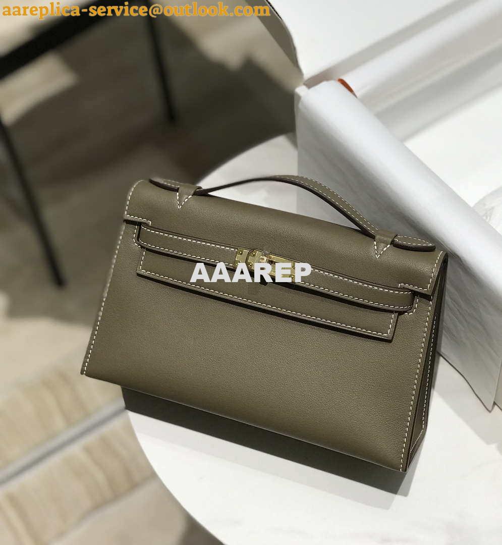 Replica Hermes Kelly Pouchette Swift Leather clutch bag Gold H230274