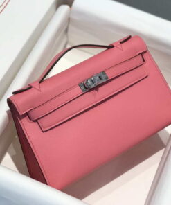 Replica Hermes Mini Kelly Pouchette Swift Leather clutch bag Silver H230253