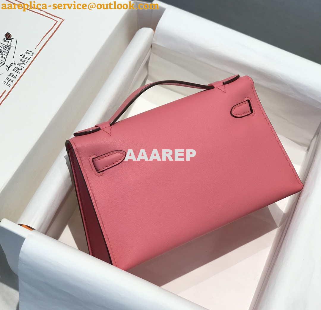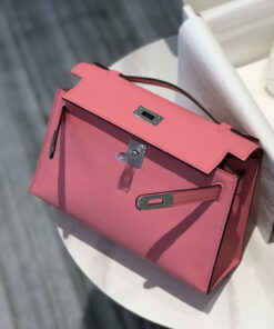 Replica Hermes Mini Kelly Pouchette Swift Leather clutch bag Silver H230253