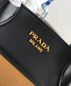 Replica Prada 1BA046 Medium Esplanade Leather Tote Bag Apricot and Black