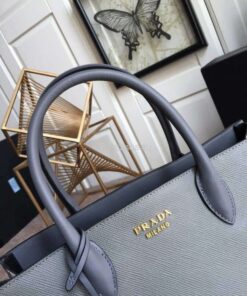 Replica Prada 1BA153 Large Saffiano Leather Handbag in Gray