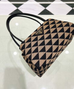 Replica Prada 1BA368 From The Runway Small embroidered fabric Prada Symbole bag Black and Beige