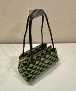 Replica Prada 1BA368 From The Runway Small embroidered fabric Prada Symbole bag Black Ivy Green