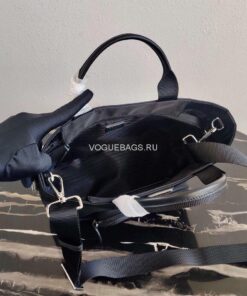 Replica Prada 1BG354 tote shoulder hanbag Nylon calfskin leather Black
