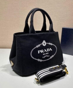 Replica Prada 1BG439 Denim Tote bag Black and white