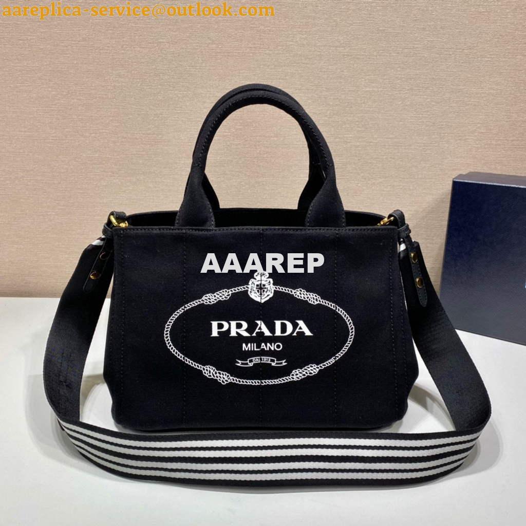 Replica Prada 1BG439 Denim Tote bag Black and white
