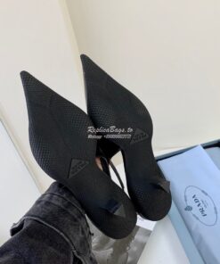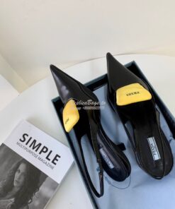 Replica Prada Brushed Leather Gabardine Slingback Pumps 1I566M Black