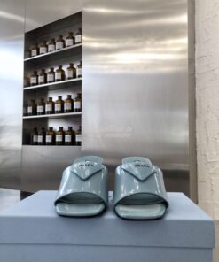 Replica Prada Brushed Leather Mid-heeled Slides 1XX590 Blue