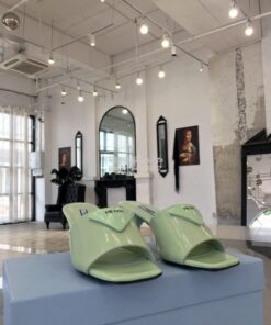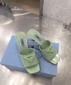 Replica Prada Brushed Leather Mid-heeled Slides 1XX590 Green