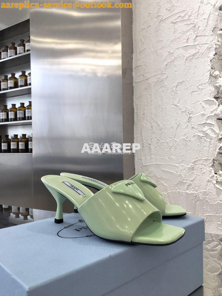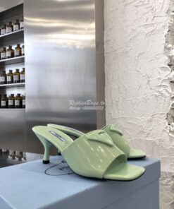 Replica Prada Brushed Leather Mid-heeled Slides 1XX590 Green