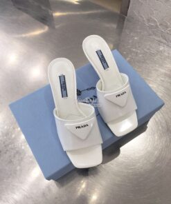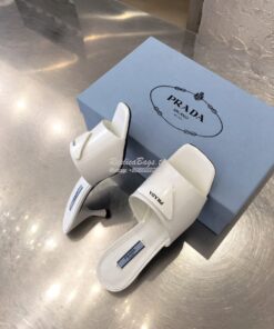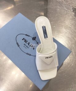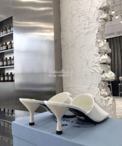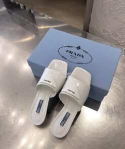 Replica Prada Brushed Leather Mid-heeled Slides 1XX590 White