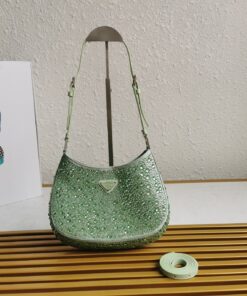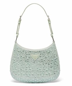 Replica Prada Cleo Bag In Aqua Satin with Cystal Appliques