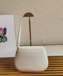 Replica Prada Cleo Flap Bag In White Brushed Leather