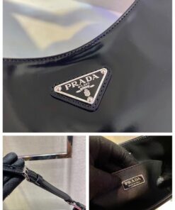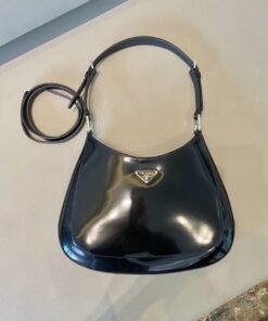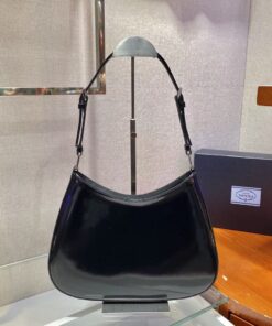 Replica Prada Cleo Large Bag In Black Brushed Leather