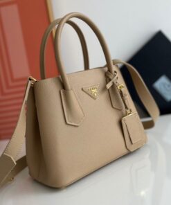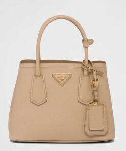 Replica Prada Double Mini Bag In Beige Saffiano Leather
