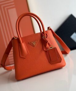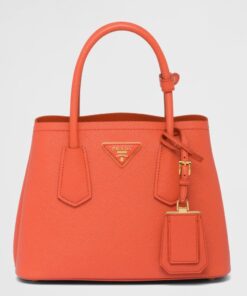 Replica Prada Double Mini Bag In Orange Saffiano Leather
